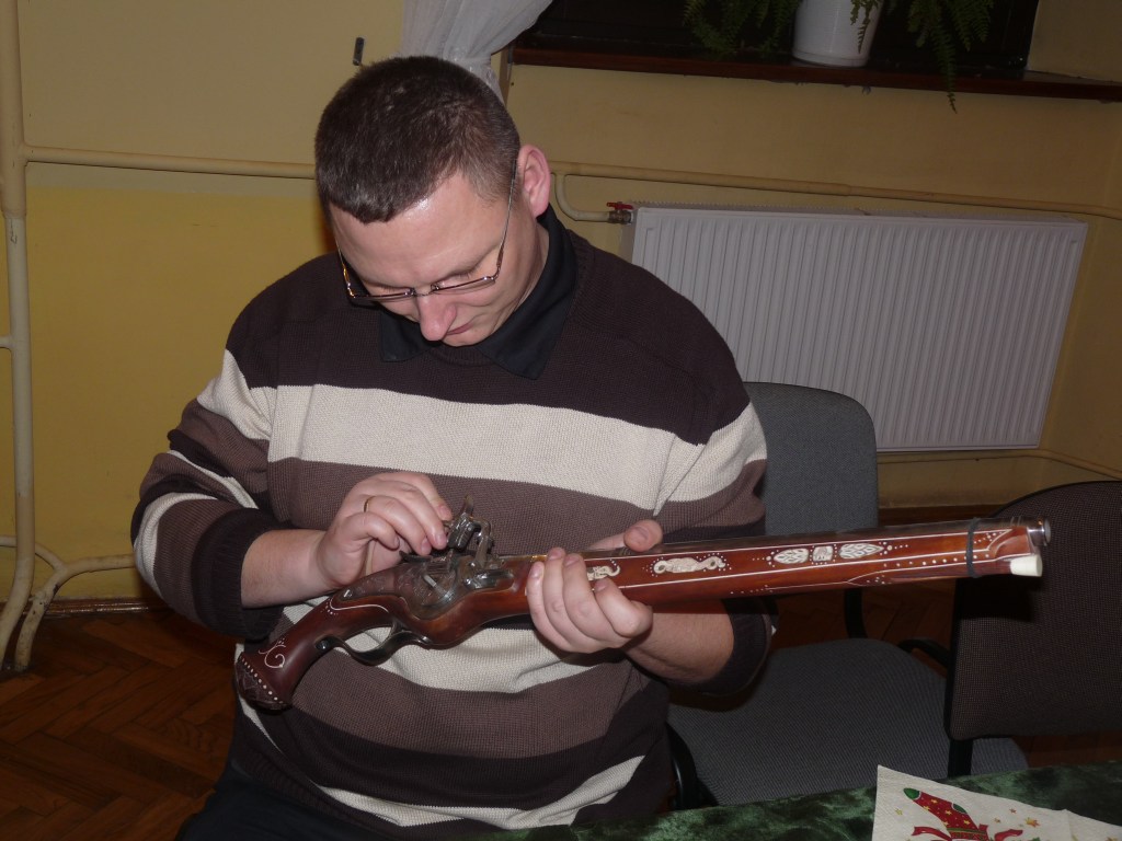 Cieszynki - słynne strzelby przez kilkaset lat były polskim hitem eksportowym. Broń opisana została nawet w Panu Tadeuszu. Teraz robi je juź tylko jeden rusznikarz.Jerzy Wałga ma pracownię na Starym Targu w Cieszynie. cieszynek wykonał ponad trzydzieści. W środę 27 stycznia, opowiadał o swojej pracy oraz hobby na spotkaniu z Kołem Macierzy Ziemi Cieszyńskiej w Zebrzydowicach. Na zdjęciu "admin" podziwiający piekną ręczną pracę rusznikarza. Fot. H. Franek dodano: 2010-01-30 22:24:46 |
