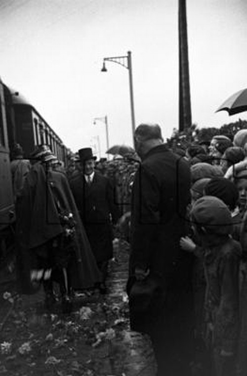 Generalny Inspektor Sił Zbrojnych RP generał Edward Rydz-Śmigły przechodzi przed grupą harcerek, które rzucają kwiaty pod jego nogi na peronie stacji w Zebrzydowicach witając go po powrocie z wizyty oficjalnej we Francji. Zebrzydowice Data wydarzenia: 1936/09 foto: NAC dodano: 2008-09-24 22:44:11